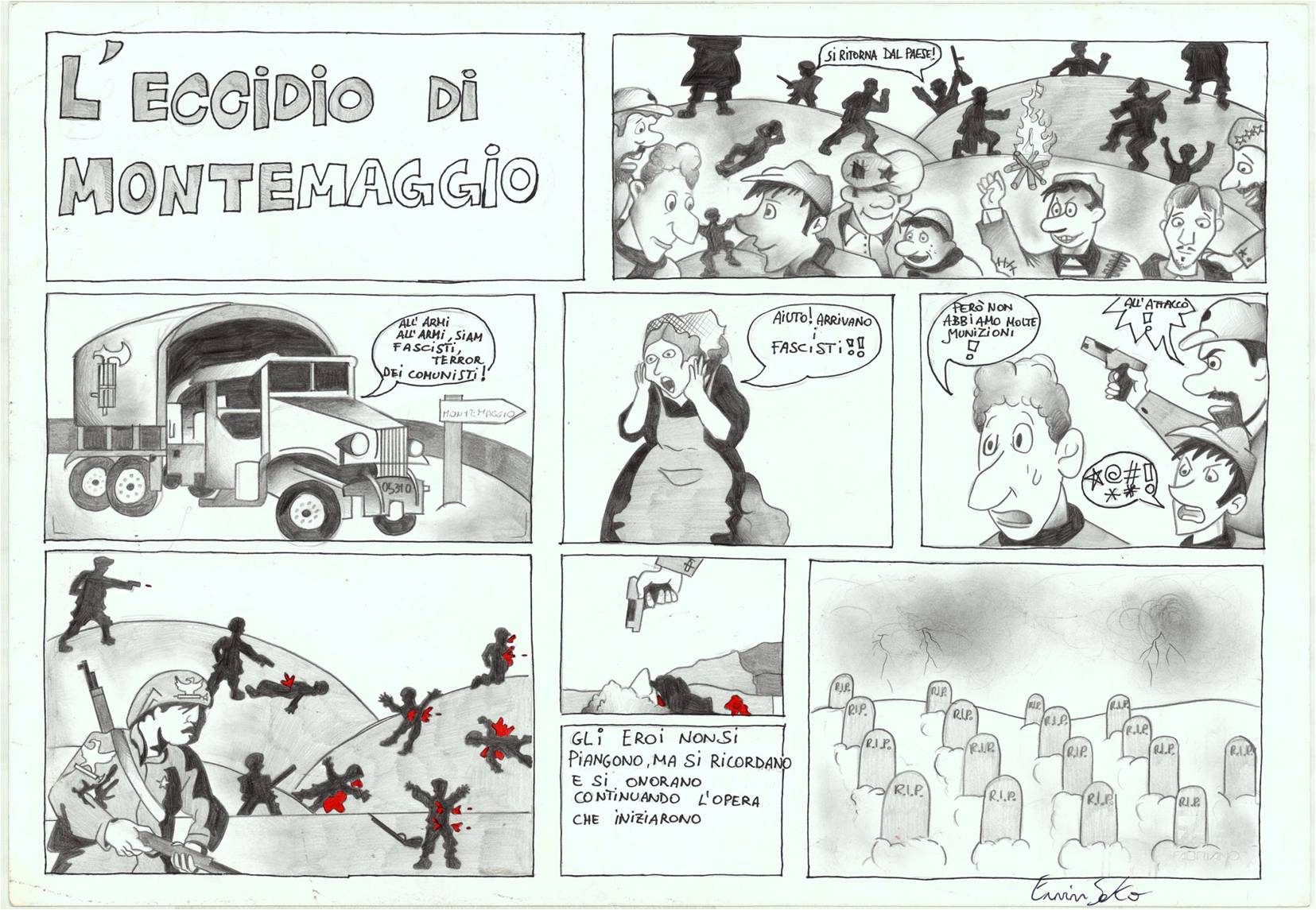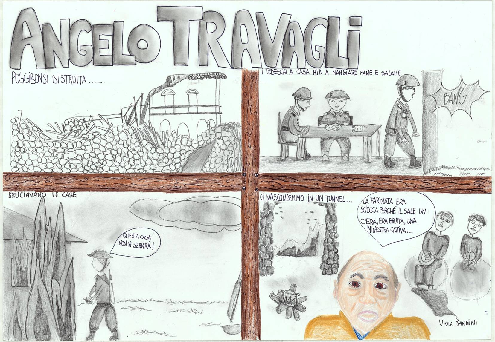 Successivamente, coadiuvati dalle professoresse Simona Del Bravo e Nadia Foderi, alcuni di loro, ciascuno avvalendosi della propria sensibilità e di un proprio personale stile, sono stati capaci di sintetizzare efficacemente in una sola tavola molti aspetti salienti di quelle narrazioni.