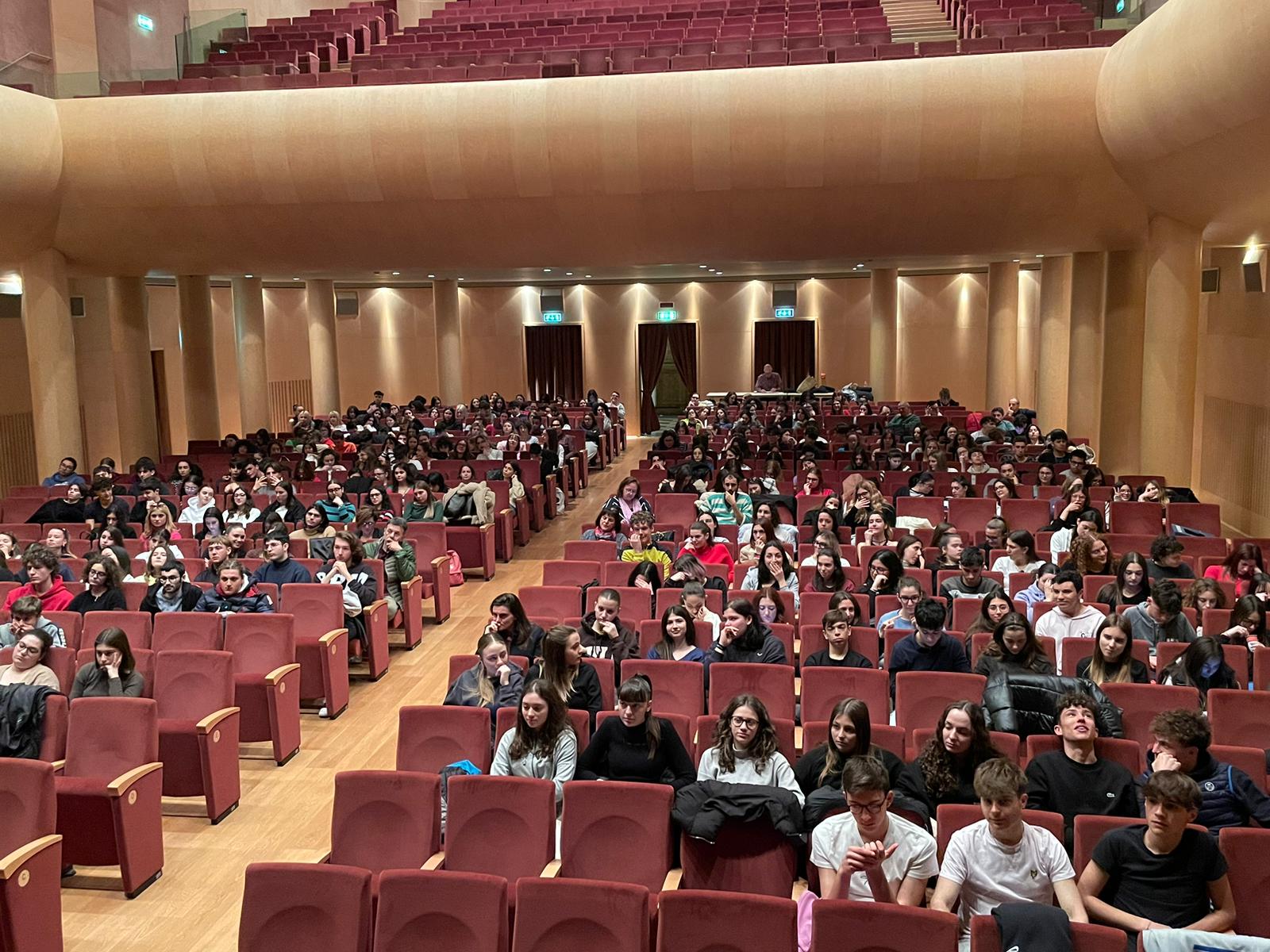 Le studentesse e gli studenti dei licei colligiani hanno assistito e partecipato con curiosità e domande alla lezione del professore dalla platea del Teatro del Popolo, dalle 11 alle 13 di sabato 25. Cammarosano è tornato a Colle dopo il recente conferimento della cittadinanza onoraria della città il 18 febbraio scorso.